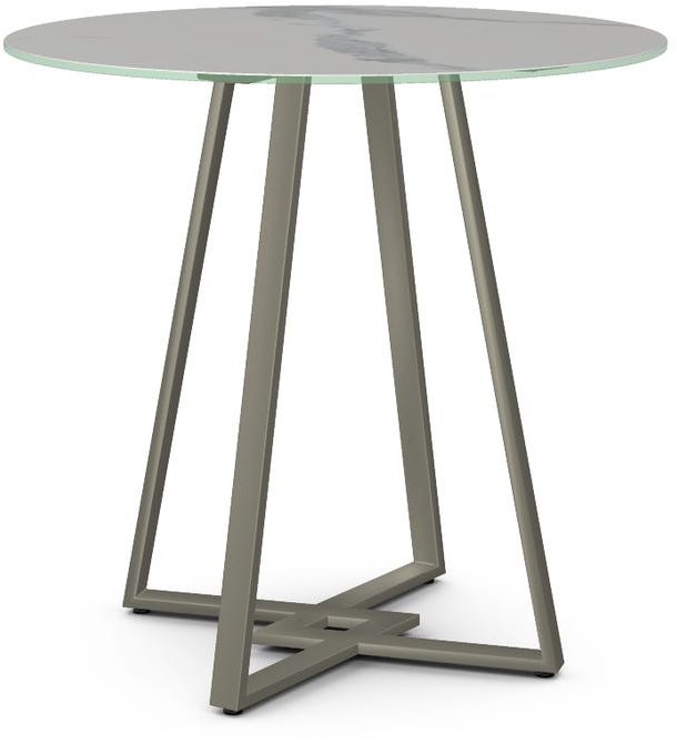 Italian porcelain on glass tabletop with a Statuario marble finish and 39" diameter.