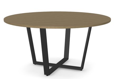 Let The Ellington table be the centerpiece of your dining space. The crossed metal base steals the spotlight, creating a captivating focal point that draws attention. Available in a wide range of materials, customize the tabletop to your personal style. Shown in 25 Black Coral Metal and 21 Biscotti Table Top.Read More