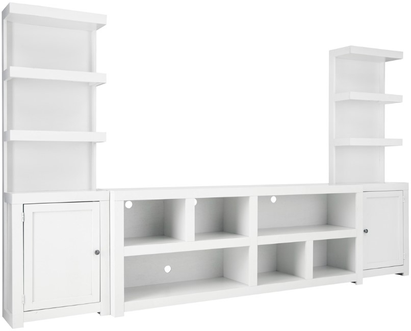 The Aspenhome® Mackenzie White Entertainment Wall offers a spacious, functional solution for organizing your media and electronics. With ample storage and built-in features for easy cable management, it enhances your living area with its durable construction and versatile layout, accommodating TVs of various sizes.Read More