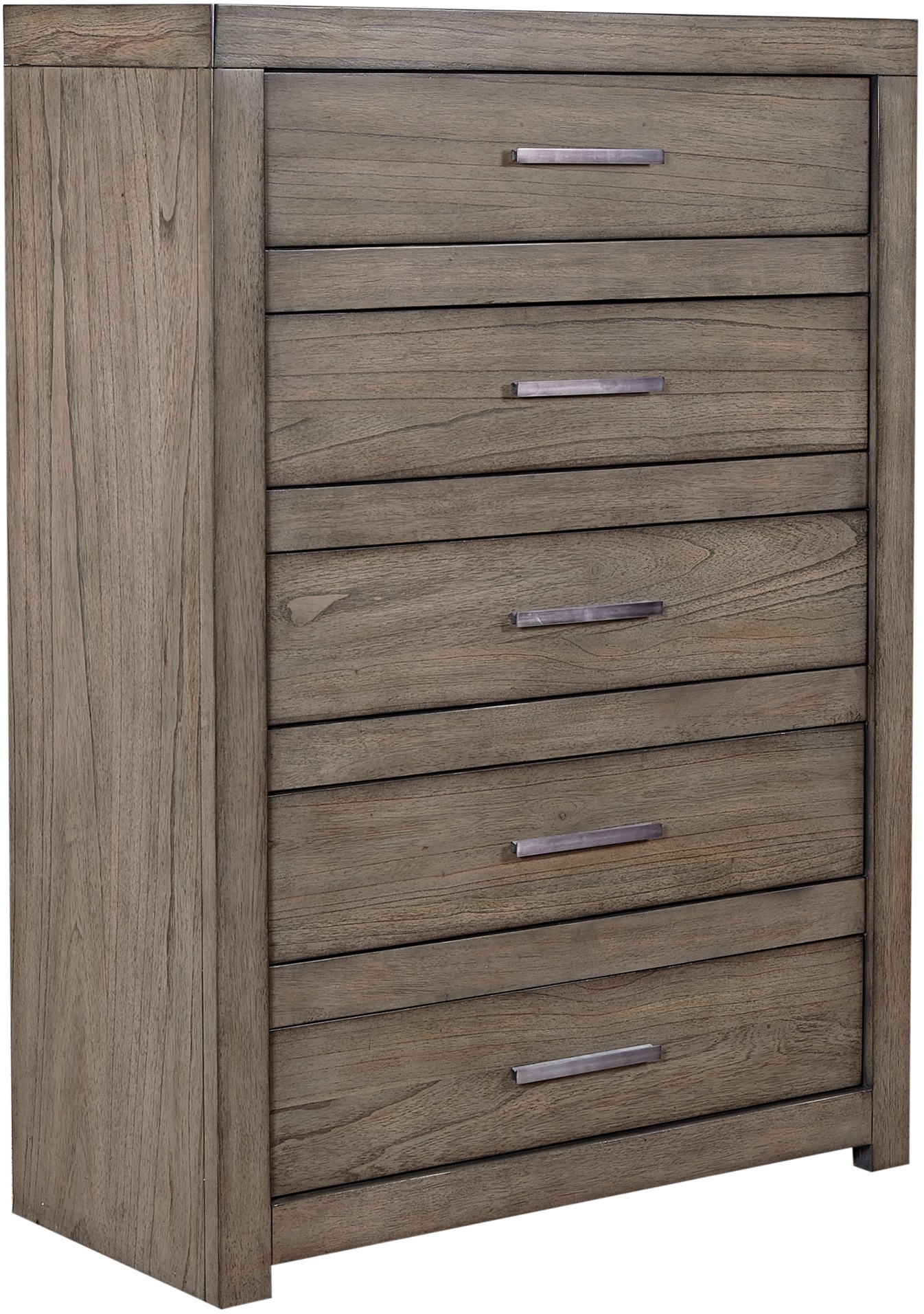 From the gorgeous greystone finish to the charming aged bronze pull hardware, the Modern Loft collection will make a statement in any home. Modern Loft Greystone Chest with five drawers and greystone finish.Read More