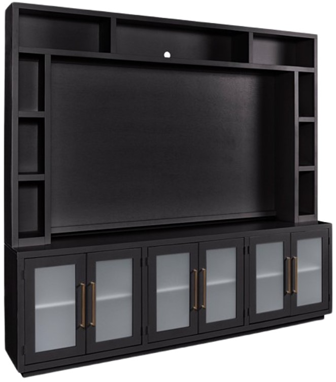 The Aspenhome® Perry Black Console and Hutch offers versatile storage and display options for your living space. Featuring a spacious console with ample shelving and cabinet space, along with an elevated hutch for added storage, it combines functionality with a sleek, streamlined appearance.Read More