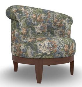 Add a little pizzazz to your sitting room, bedroom, corner dining room, or any room with the Attica 360-degree swivel chair! The one-piece arm-and-back combination has a subtle flare outward at the top to give it a touch of sophistication, and in keeping with the gentle curves of the chair. The plush, circular cushions don’t sacrifice comfort for style and come with over 700 choices of fabric. The base and legs of the chair are finished in your choice of Dark Walnut, Espresso or Riverloom that lend to the delicate refinement of this chair.