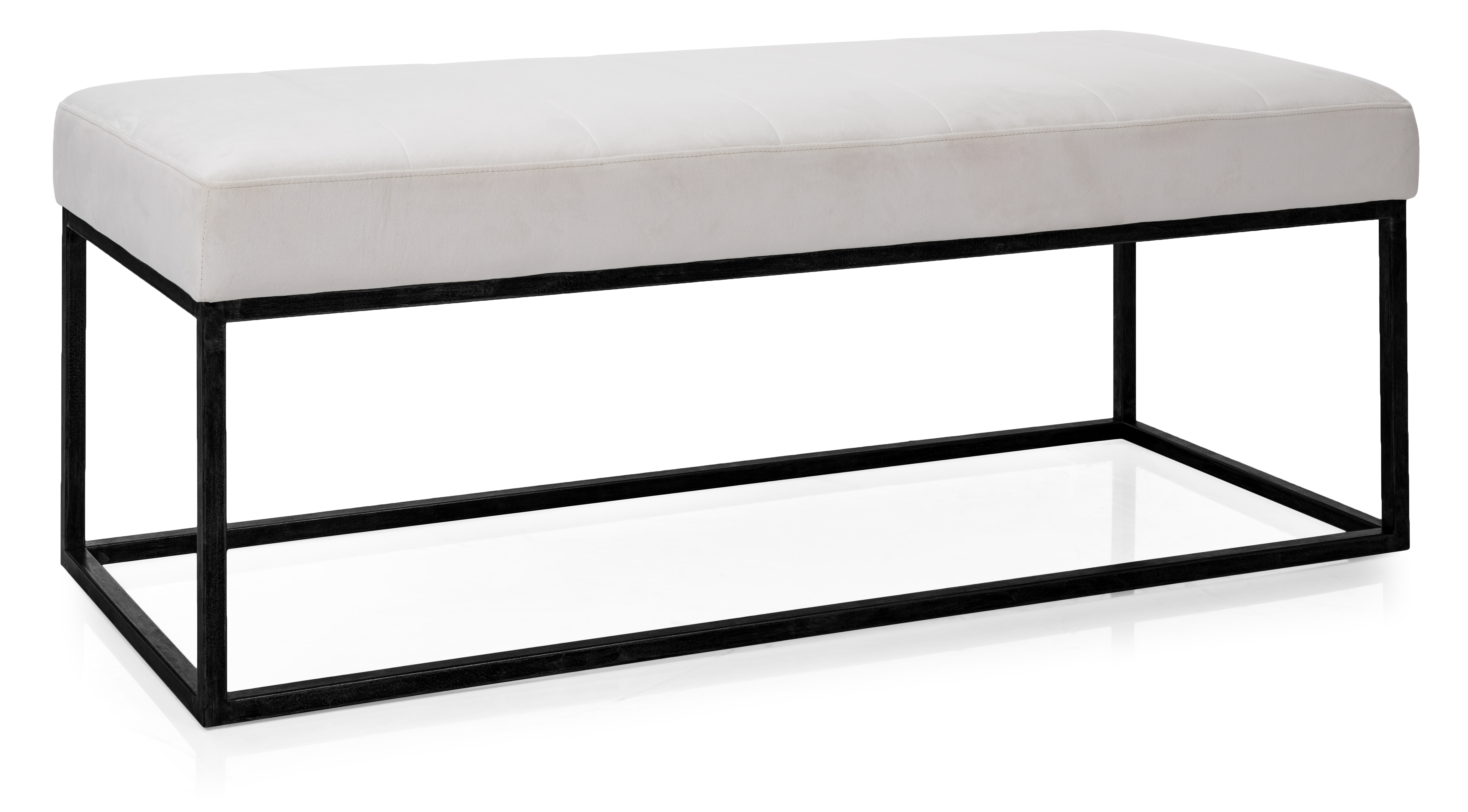 Metal frame with black powder coating.Fabric cover in beige velvet with channel stitching.Read More