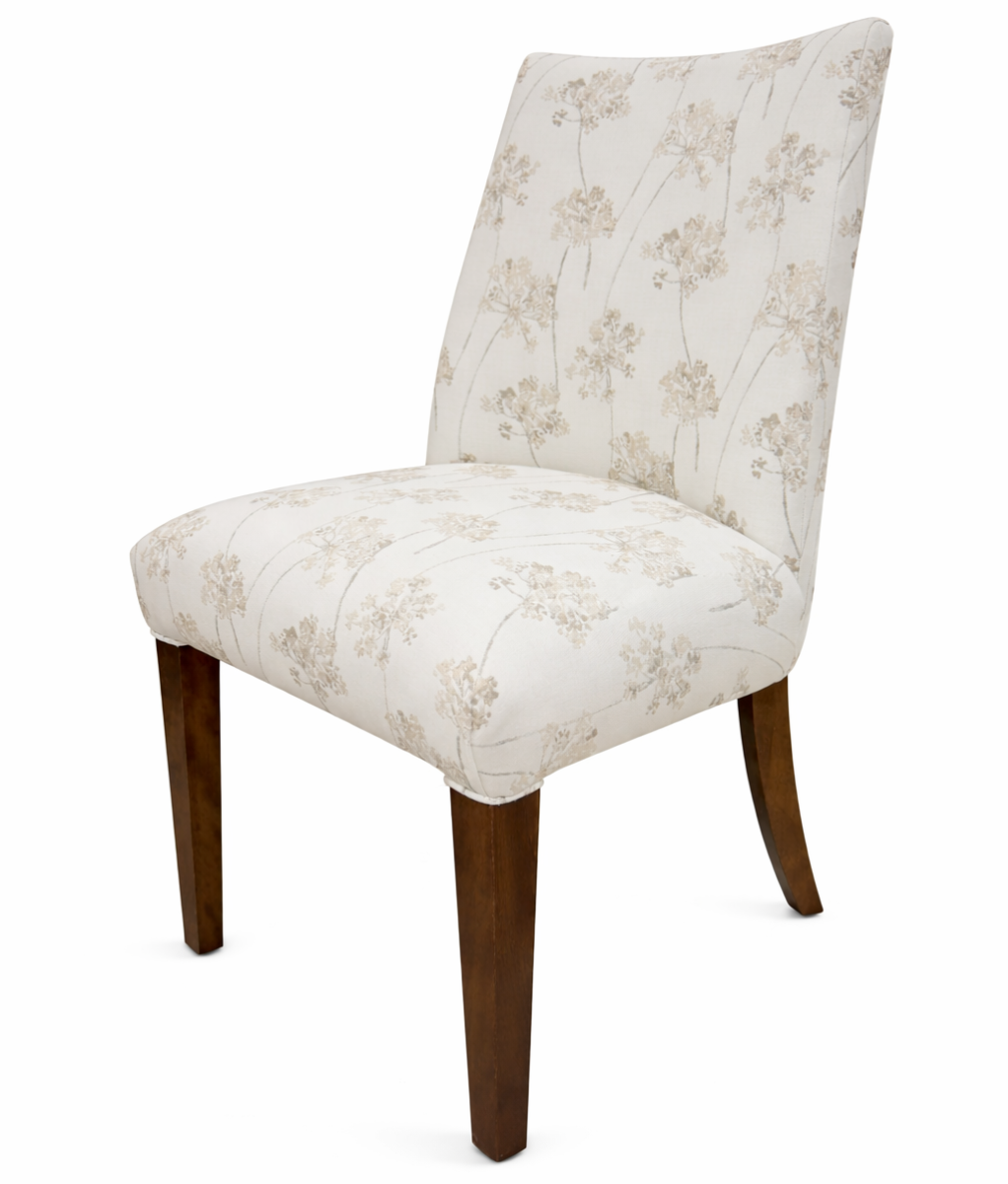 This fully upholstered chair is anything but ordinary. In addition to offering remarkable comfort, it will enhance your dining room with its massive wood accents on the sides. Customize it by choosing your favorite wood color and fabric.Read More