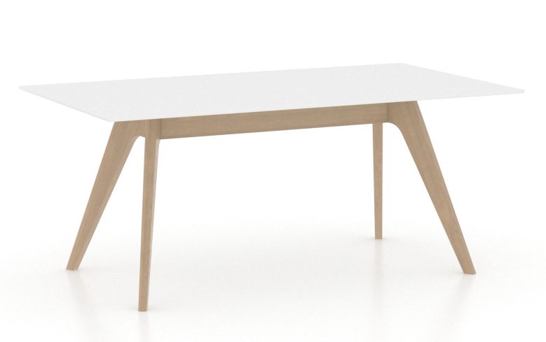 This beautiful rectangular table features clean, modern lines that will add unparalleled elegance to your dining room. A high-quality glass top seems to float on these stunningly angled solid wood legs. Shown with Snow Frosted Glass.Read More