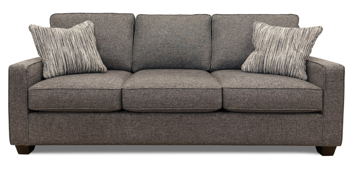 Decor-Rest® 2855 Queen Sofa Bed features box seat cushions with contrast or self-welt and semi-attached back cushions. Comes with Memory Foam Mattress. Showing in Grade 23 Force Charcoal.Read More