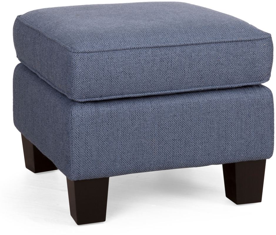Decor-Rest® 2323 Denim Blue Ottoman features an attached cushion top while a banded base and block feet in a black finish completes the look.