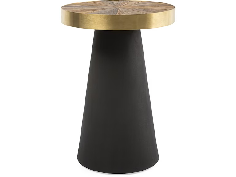 lm wood top with stainless steel trim in brass finish. Black cement cone base.Read More