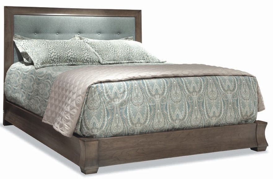 This bed is made with solid Cherry wood and features a Coastal Saville finish and a headboard upholstered in Cashmere fabric.Read More