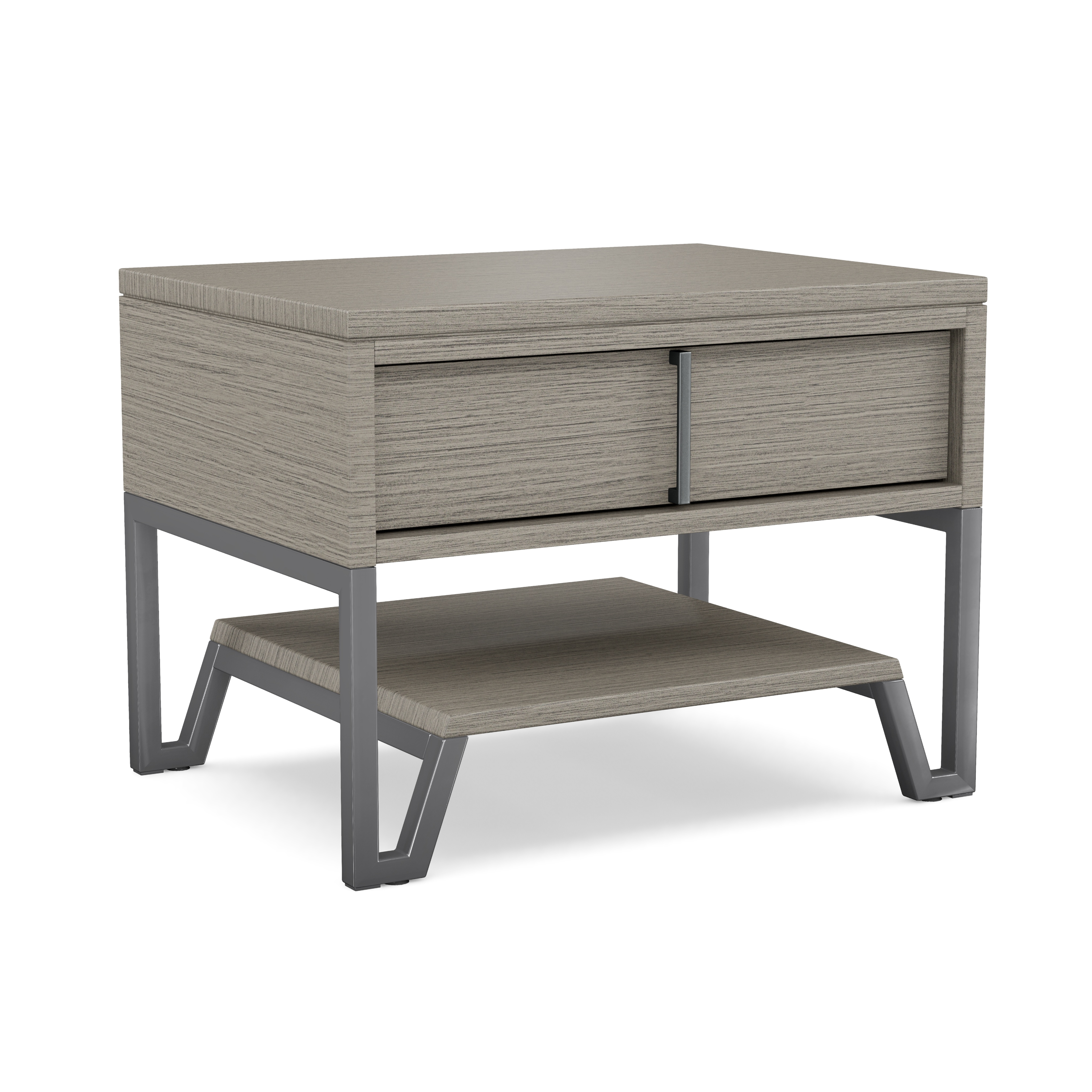 Milestone Nightstand features maple construction, transitional style, and soft close drawer guides. Shown in Dusk finish.Read More