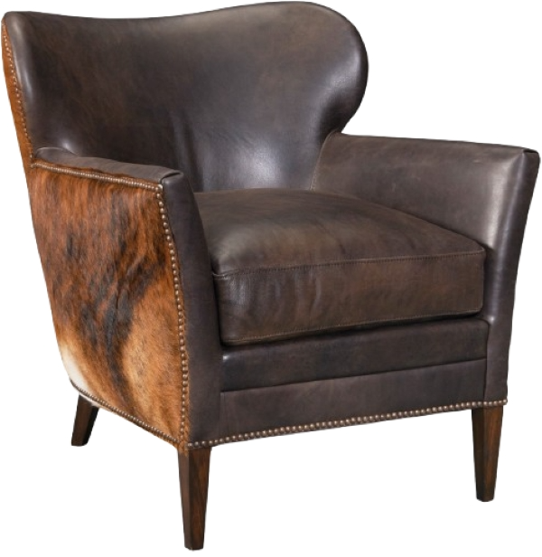 The dramatic silhouette of the Kato club chair contrasts the rich debonair espresso aniline top grain leather on the interior with the Dark Brindle hair-on-hide pattern on the sides and back. Dark wood legs and nailhead trim add a designer touch.Read More
