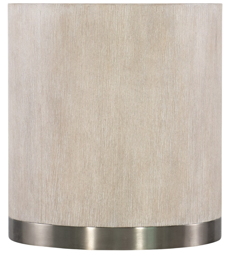 Sleek and stylish with a simple and timeless modern profile, the Modern Mood round end table combines quartered oak veneers with a metal-wrapped band around the base in a warm pewter finish. The wood table is finished in diamond, featuring tactile wire-brush detailing with crystal-like alabaster and pewter hues for a soft sophistication.Read More