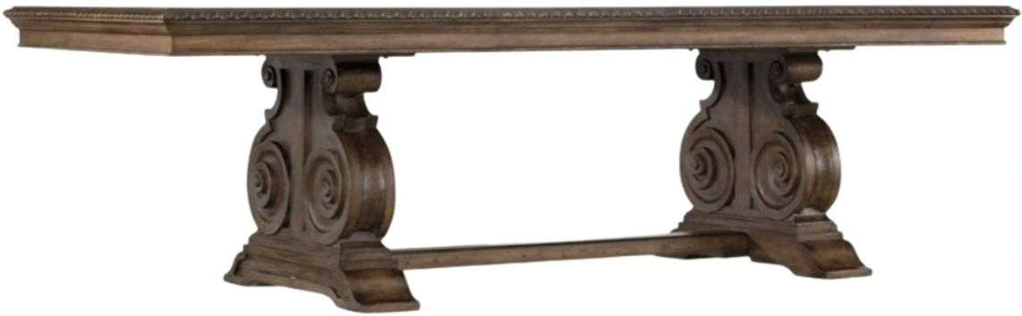 The drama of classic European design hits the heights with the grand Rhapsody rectangle dining table with a scrolled trestle base. Imagine a 12th century French chateaux that is been brought up to date without leaving a single charming detail behind.Read More