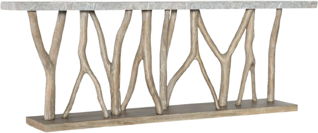 An artistic accent of organic elegance, the Surfrider console table has a stone veneer top and a tree branch motif base, with the base crafted of pecan veneers in a light-and-airy wood finish. Complete your home with beautiful pieces that are more than meets the eye.Read More