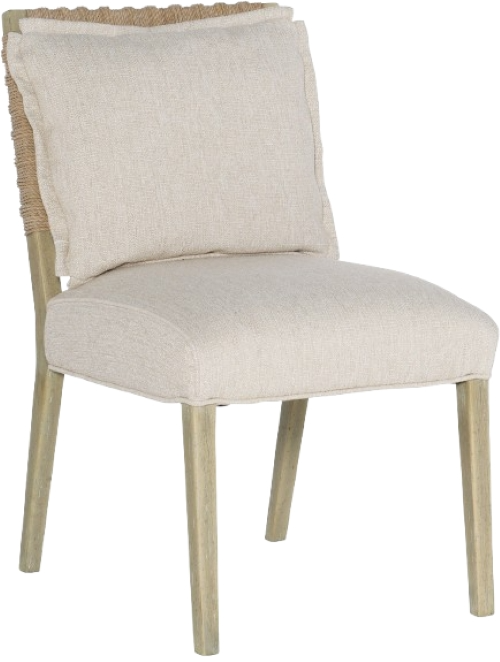 Inspired by a California casual aesthetic, the Surfrider Side Chair exudes character with woven rope backs and a wood frame finished in the light natural-colored Driftwood finish. The upholstered seat and loose pillow back are covered in the Zuri Cream performance fabric for carefree maintenance and inviting comfort.Read More