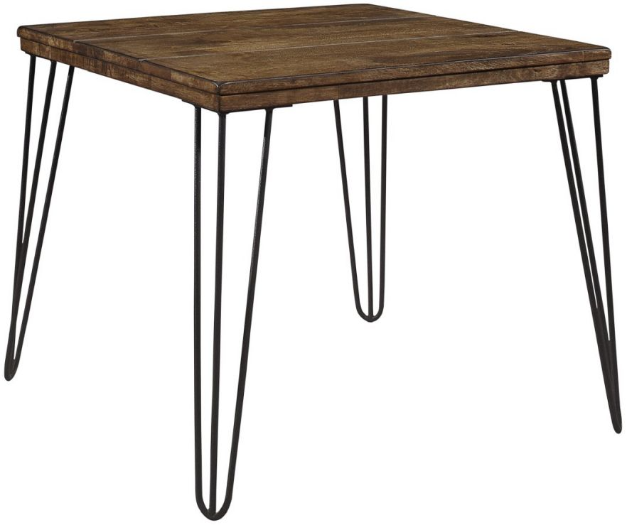 With a profile that exemplifies the versatility of transitional styling, the Kellson Collection will be the perfect addition to your casual living room décor. The solid Asian hardwood tabletop of the end table features a rustic oak finish, complemented by the supporting black-finished metal hairpin legs.Read More