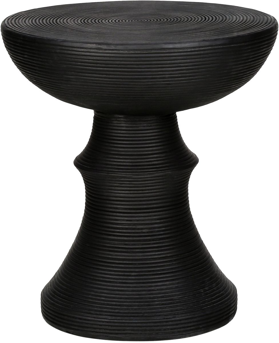 The round silhouette with an elegant bowl-like top and a sleek, black finish in a wrap-around, ribbed design ensures this space saving side table effortlessly optimizing your space whether as an end table or nightstand.