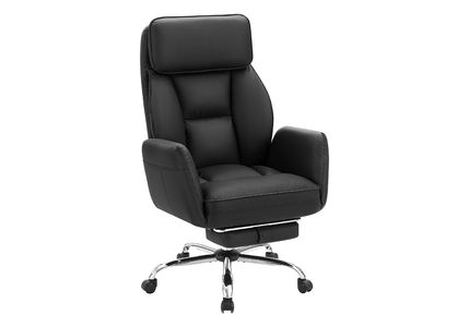 Designed for productivity and everyday comfort, this modern office chair is an ideal compliment to any computer desk or home office. Upholstered in sleek black leather look and accented with refined chrome metal details, it delivers a clean, fashionable style that suits both professional offices and contemporary home setups.Read More