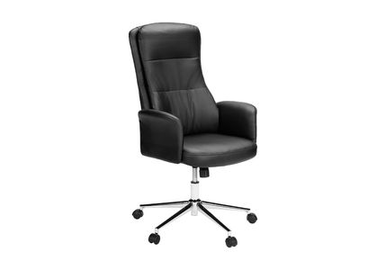 This modern black leather-look office chair features a high back design and plush foam cushioning, ensuring you stay comfortable during long work hours