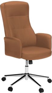 This modern brown leather-look office chair features a high back design and plush foam cushioning, ensuring you stay comfortable during long work hours