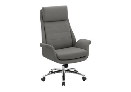 The upholstered high back design, finished in a sleek dark grey leather-look, pairs with plush foam cushioning to create a truly comfortable seating experience for extended hours. With adjustable height, supportive armrests, and an ergonomic structure, this chair adapts easily to your workspace needs.Read More