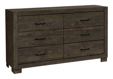 Each of the six spacious drawers is meticulously crafted with solid dove tail drawer construction, ensuring smooth operation and lasting quality. You'll love the attention to detail, with drawers finished beautifully on the inside, offering that upscale look and feel you crave. The black metal handles enhance the dresser's sleek profile, providing easy access to your essentials. Fully assembled right out of the box, you can start enjoying your new dresser without the hassle of a complicated setup. Plus, with our 2-year limited warranty against manufacturer defects, you can rest easy knowing that we stand behind our product and your investment. Whether redesigning your space or simply adding more storage, this transitional dresser complements any décor style while adding a rustic charm to your bedroom. Bring in the other matching pieces (each sold separately) to create a bedroom set of your dreams.
