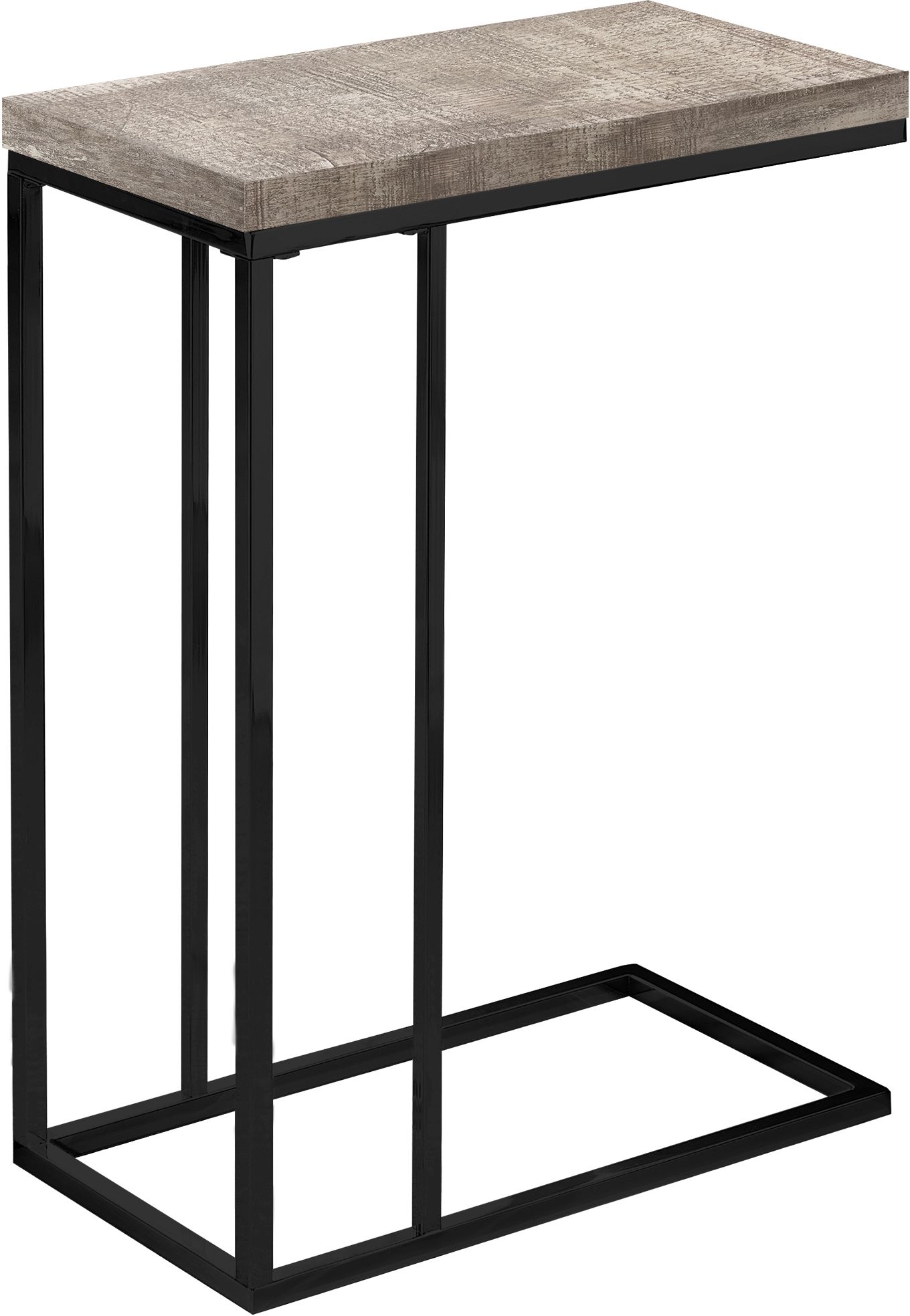 Bring a reclaimed wood look tone to your living room, office space, family room or den with this stylish taupe/black metal C end table