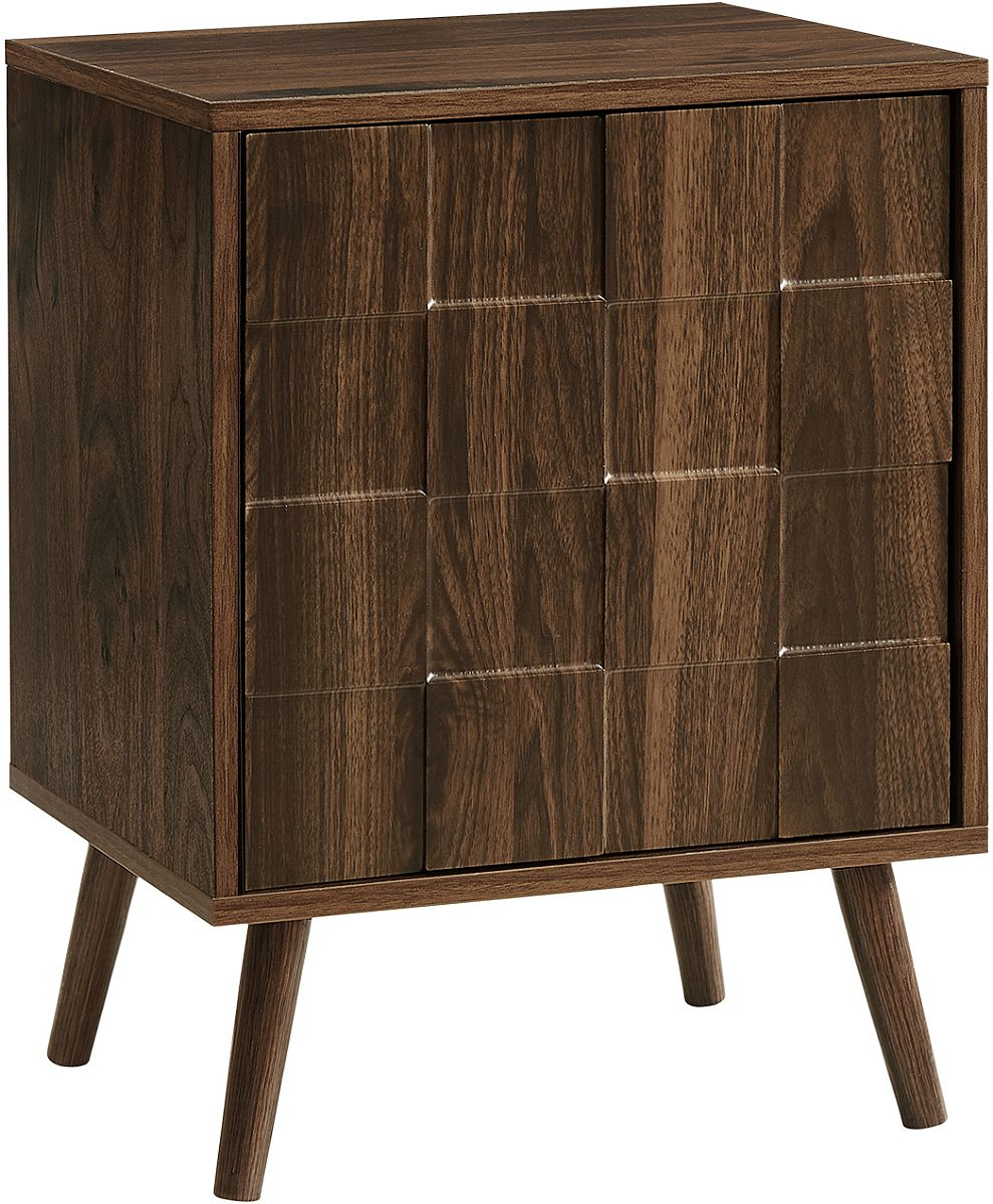 The durably designed piece features solid wood legs and a push latch mechanism door for practical storage with an adjustable shelf inside. Its space saving design makes it perfect for small rooms, while the easy to clean top ensures low maintenance. Place a lamp, some pictures, or a stack of books on this versatile table that adds a touch of sophistication to a room. Easy to assemble with illustrated instructions included and backed by a 5 year limited warranty against any defects, this modern side table with a mid century inspired design is a must-have when creating a space with style.