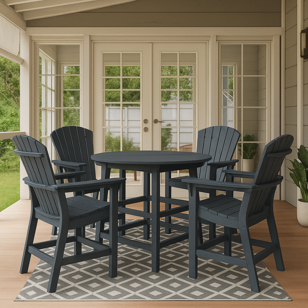 The beautiful Generation Collection is vibrant, timeless and fun. Made of up to 100% recycled materials, this sustainable collection provides classic outdoor living for all generations! Available in 32" Round top and 40" round top as shown, also available in counter height. (TT04-TB03C)