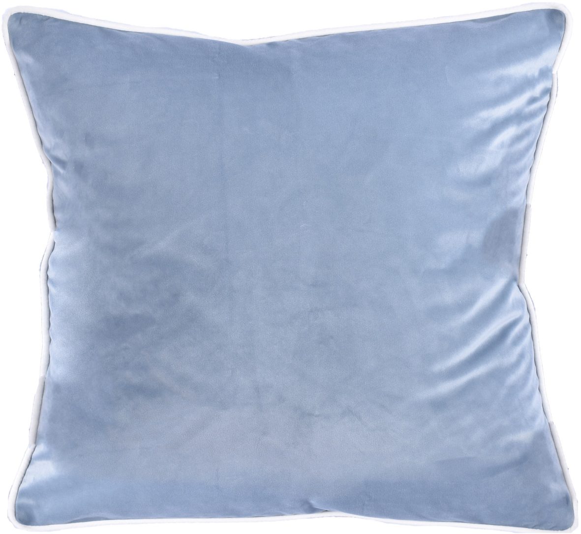 The Taza Pale Blue 20" x 20" Decorative Pillow features a Poly-Velvet cover with white piping around the edges.Read More