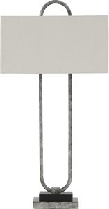 This table lamp, with its open, geometric design, draws the eye and is visually stunning. The antiqued silver metal body with rectangular hardback shade completes the look. This table lamp is sure to be a showpiece wherever you use it.Read More