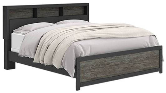 The Broachmyn bookcase bed blends utility with bold, charm. Its spacious headboard features open shelving ideal for books, décor, or nighttime essentials, while the black and gray finish adds a sleek, contemporary edge. Designed for both style and function, this bed elevates any bedroom with its commanding presence and practical storage.Read More