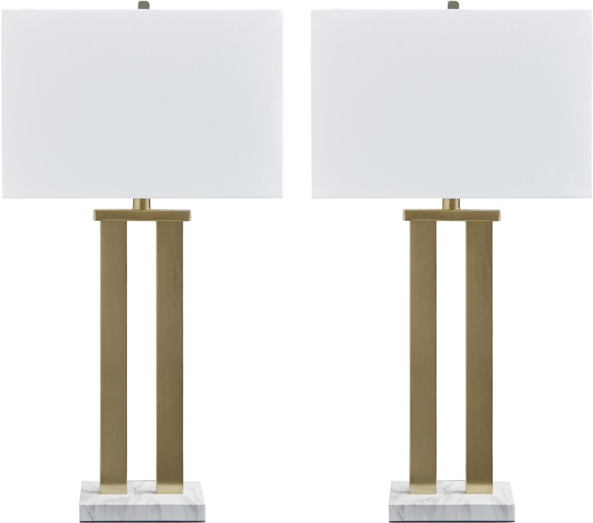 This table lamp offers modern styling for any space. Supported by a faux marble base, the contemporary piece works perfectly in a bedroom, home office or living room.Read More