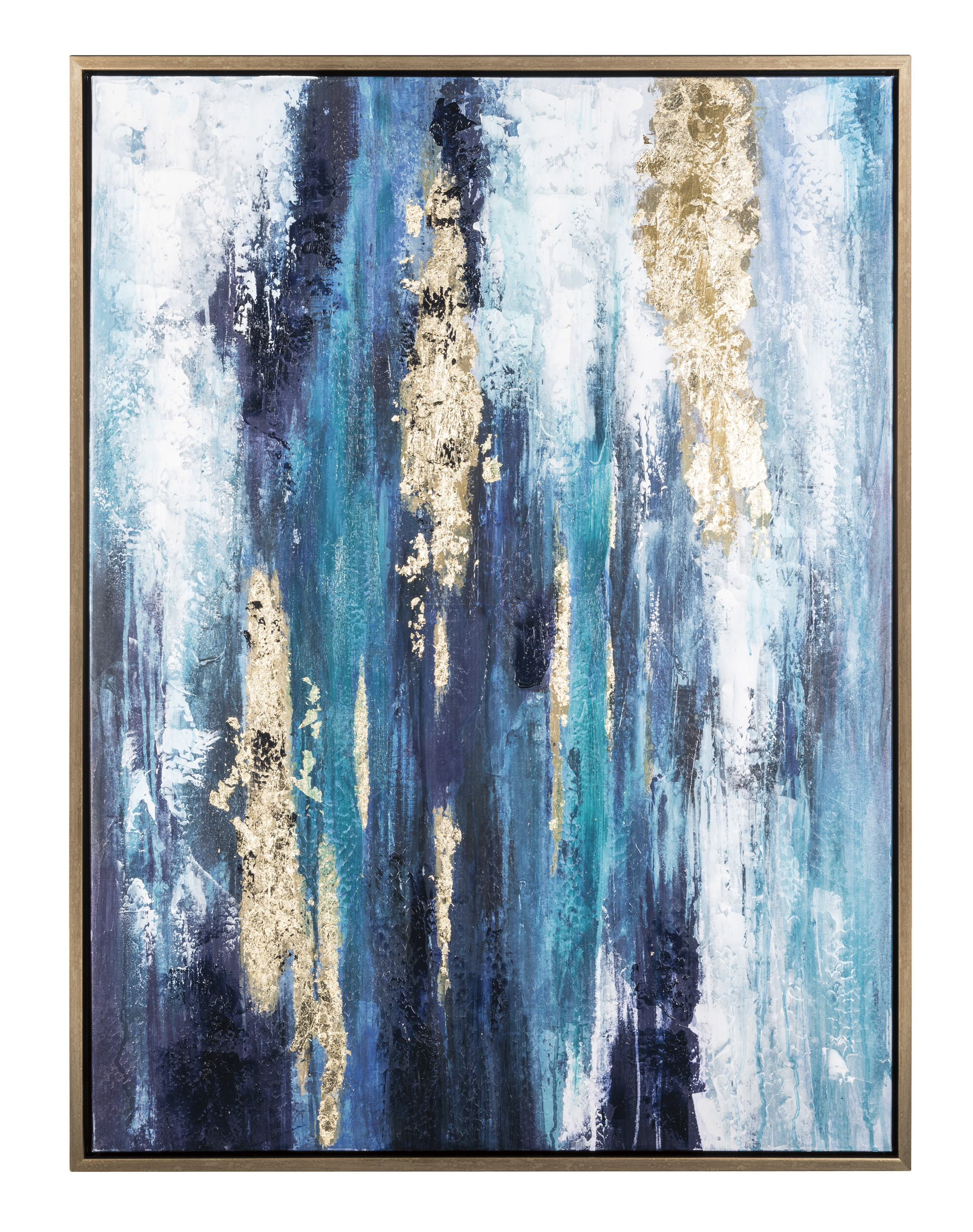 The Dinorah wall art provides cool, soothing taste with its tones of blue, teal, white, and gold on a gallery-wrapped canvas. Wall art also uses a D-ring bracket hanger for easy application.