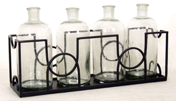 Set of 5 Accessories. Tray and 4 Vases. Clear Seeded Glass and Black Finished Metal.Read More