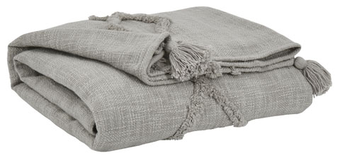Cozy up to this tantalizing cotton throw with gray tone-on-tone raised design. Chunky tassels add so much flair. Place it over your furniture or shoulders for extra warmth.