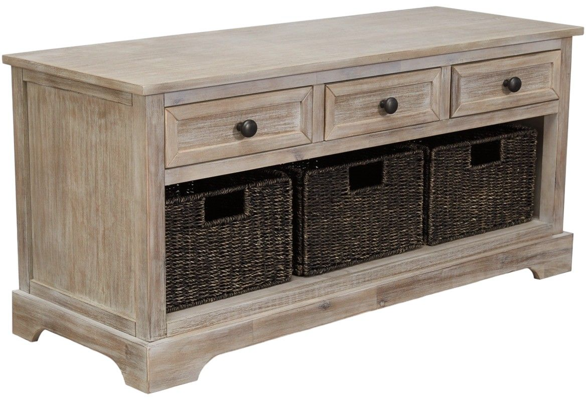 Packed with possibilities, it’s sure to be a welcome addition everywhere from the entryway to the bedroom, home office, kitchen or mudroom. Quality construction includes three smooth-gliding drawers and a trio of woven baskets that make handy catchalls.