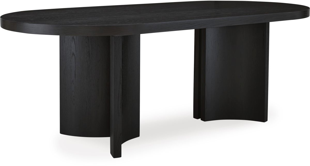 The Rowanbeck black dining table from Signature Design by Ashley® exudes modern sophistication, blending sleek lines with robust construction. Crafted with a striking black finish, this table captivates with its contemporary charm. Its spacious surface accommodates gatherings while the sturdy legs ensure durability, making it a stylish centerpiece for any dining space.Read More