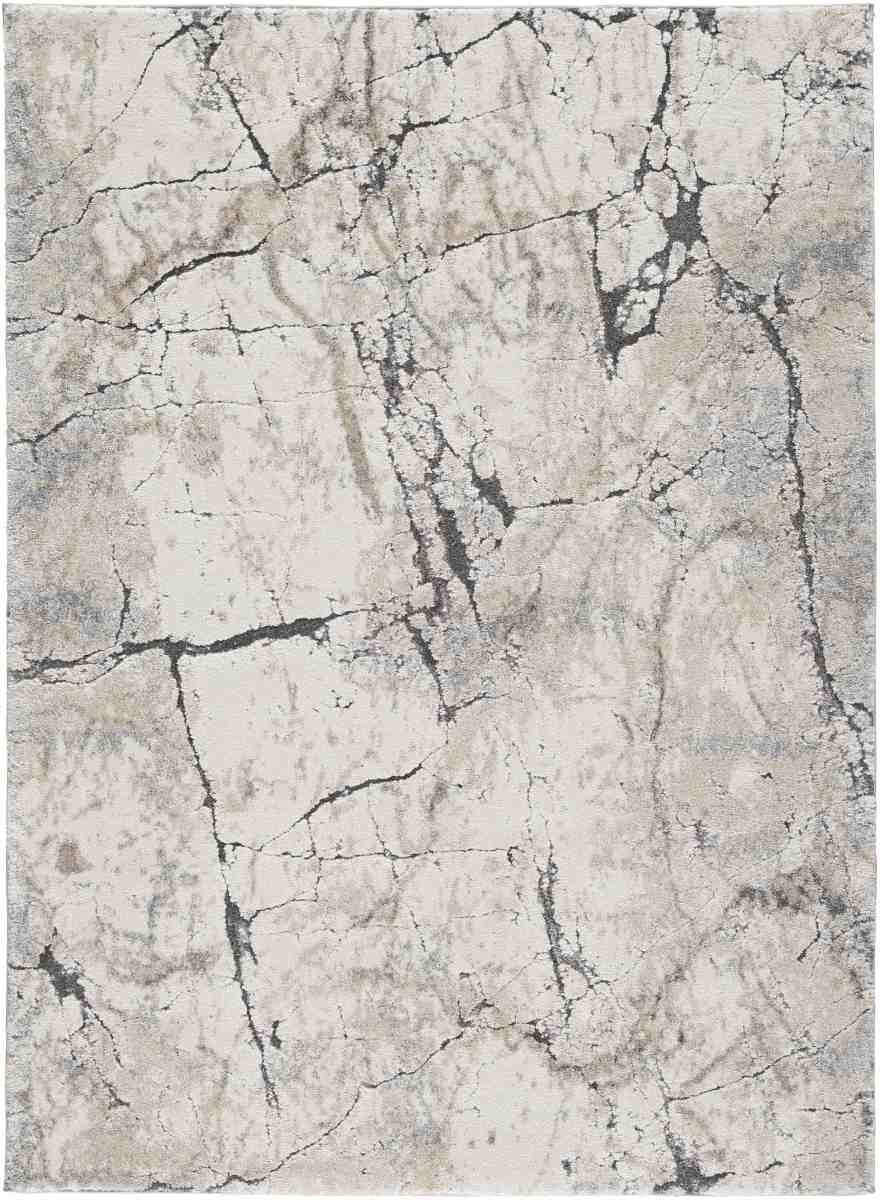Machine woven high-low abstract design in cream, beige, gray, and black. Polyester/polypropylene blend. 17mm pile. Backed with jute. Spot clean only. Rug pad recommended.Read More