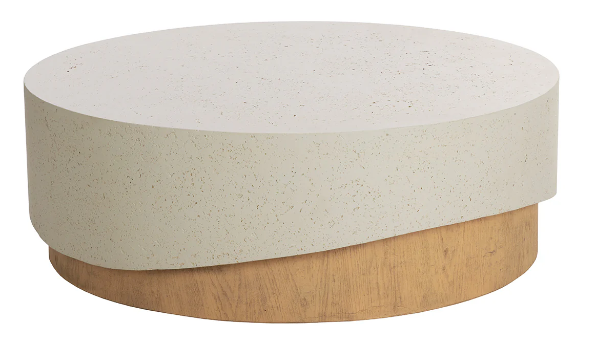 The Patras Coffee Table's stunning sculptural form makes it an ideal addition to any space. Fully constructed from concrete, this table features a textured high-low top that embraces a round base cleverly designed to resemble rustic oak wood.Read More