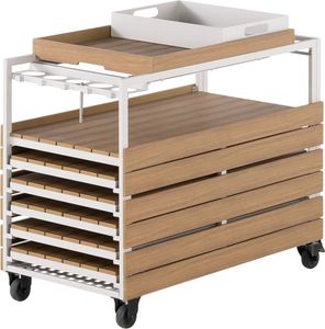 The Transformer Outdoor Bar Cart - Panel Storage is a versatile and functional addition to your outdoor entertaining space. This modern bar cart is designed to enhance your patio gatherings with ample storage and a sleek, stylish look. It includes a stemware rack, serving trays, and barware accessories, along with lockable wheels for easy mobility and security.Read More