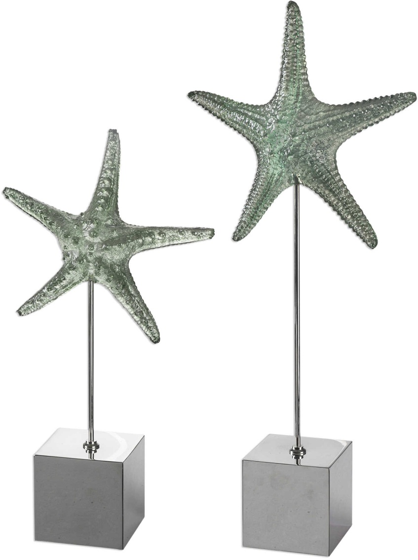Realistic starfish replicas feature a pale, marine green finish and sit atop tarnished silver stands. Sizes: Sm-10x19x4, Lg-11x24x4Read More