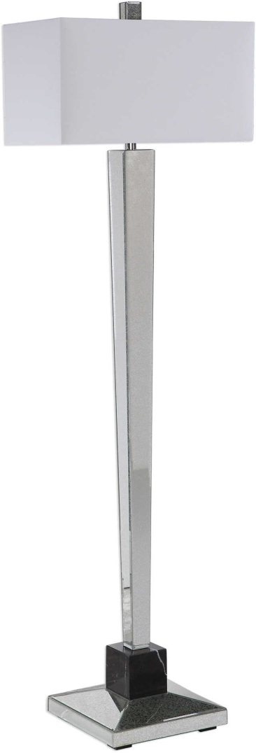 Modern elegance exudes from this sophisticated floor lamp that features an antiqued mirrored base with a matching mirrored foot, accented with a black marble column that has rich white veining, putting a fresh spin on a traditional silhouette.Read More